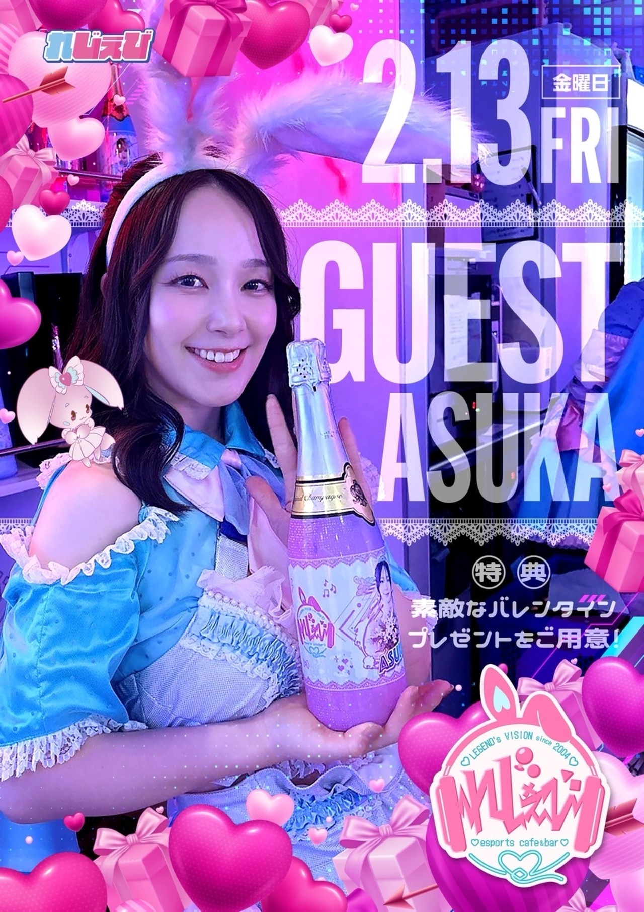 2月13日ゲストの「Asuka」にドリンクを送れます!